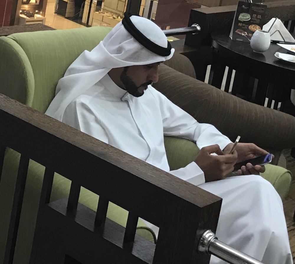 Dubai ist die größte Stadt der Vereinigten Arabischen Emirate.Der Emirati ist auch super fleißig mit zwei Handys 🙂
