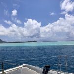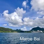 Unser Schiff liegt in der Baie Maroe und wir starten von der Pier aus mit den Katamaran in unser Abenteuer!